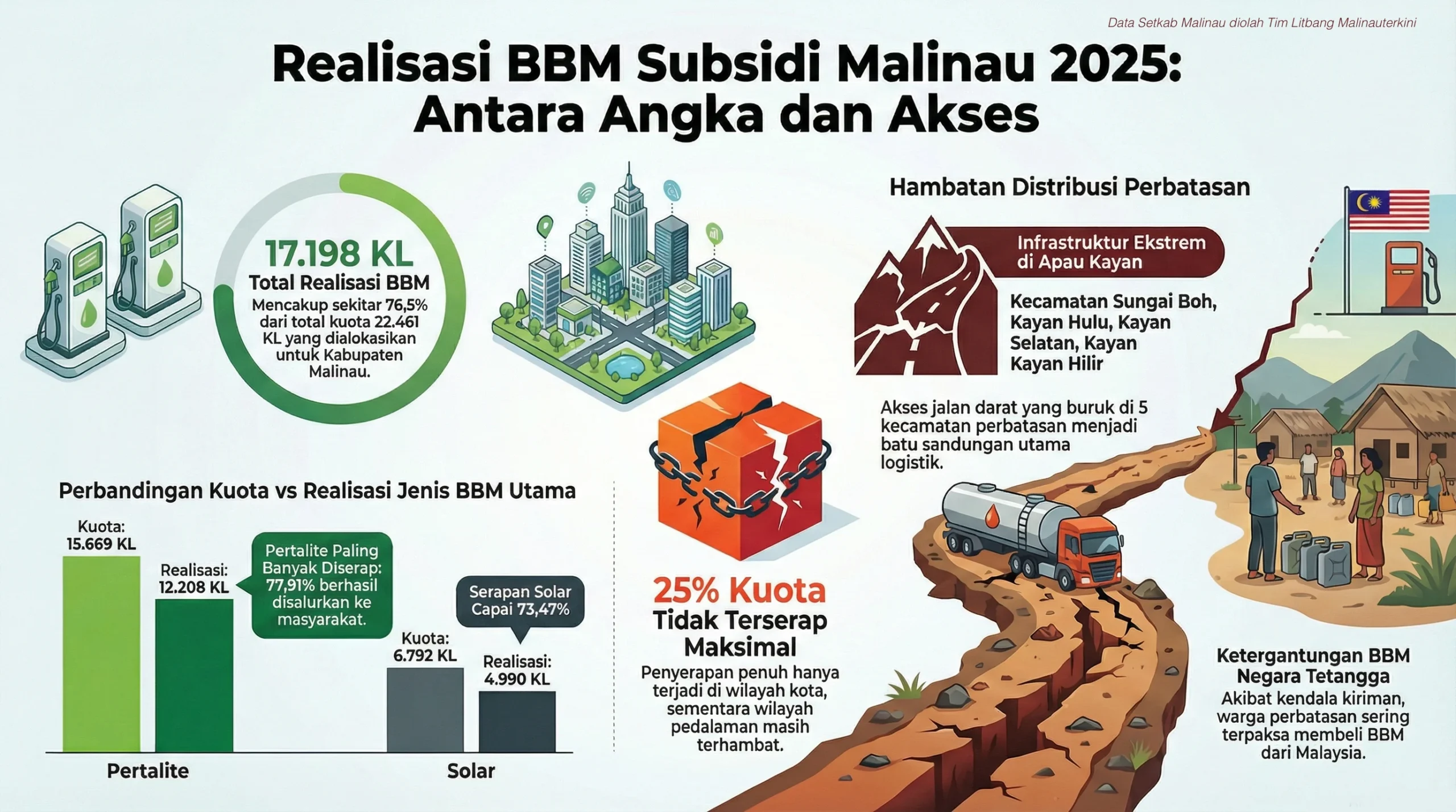 MalinauTerkini.com – Sepanjang tahun 2025, sebanyak 17.198 Kiloliter (KL) Bahan Bakar Minyak (BBM) bersubsidi dilaporkan telah mengalir dan terserap oleh masyarakat di Kabupaten Malinau.